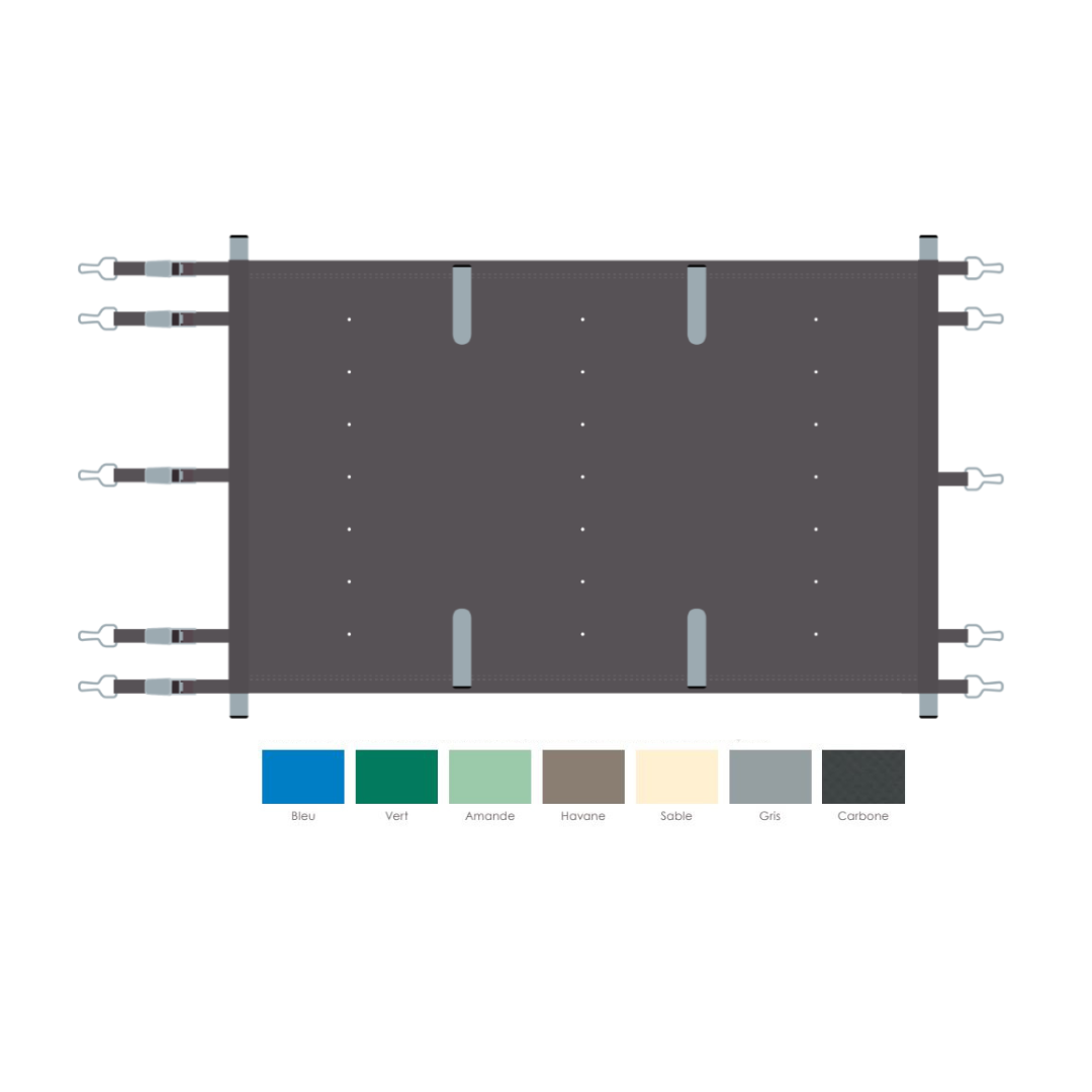 - Matière : Tissu enduit PVC 580g/m2 traité anti-UV et anti-fongicide.