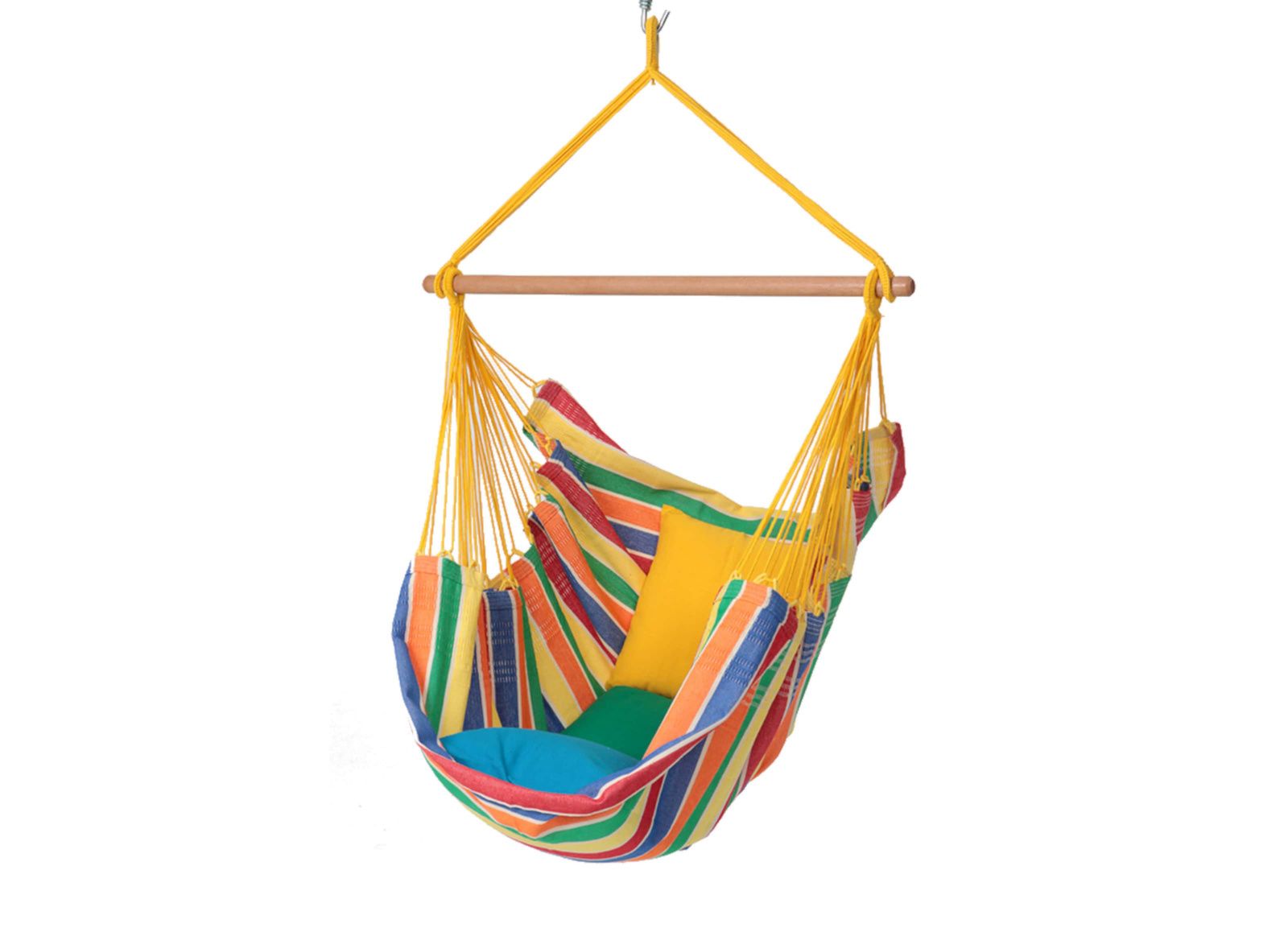 Hamac chaise | Coton avec bois | "Alegria" : Jaune, Rouge, Bleu, Vert, Orange
