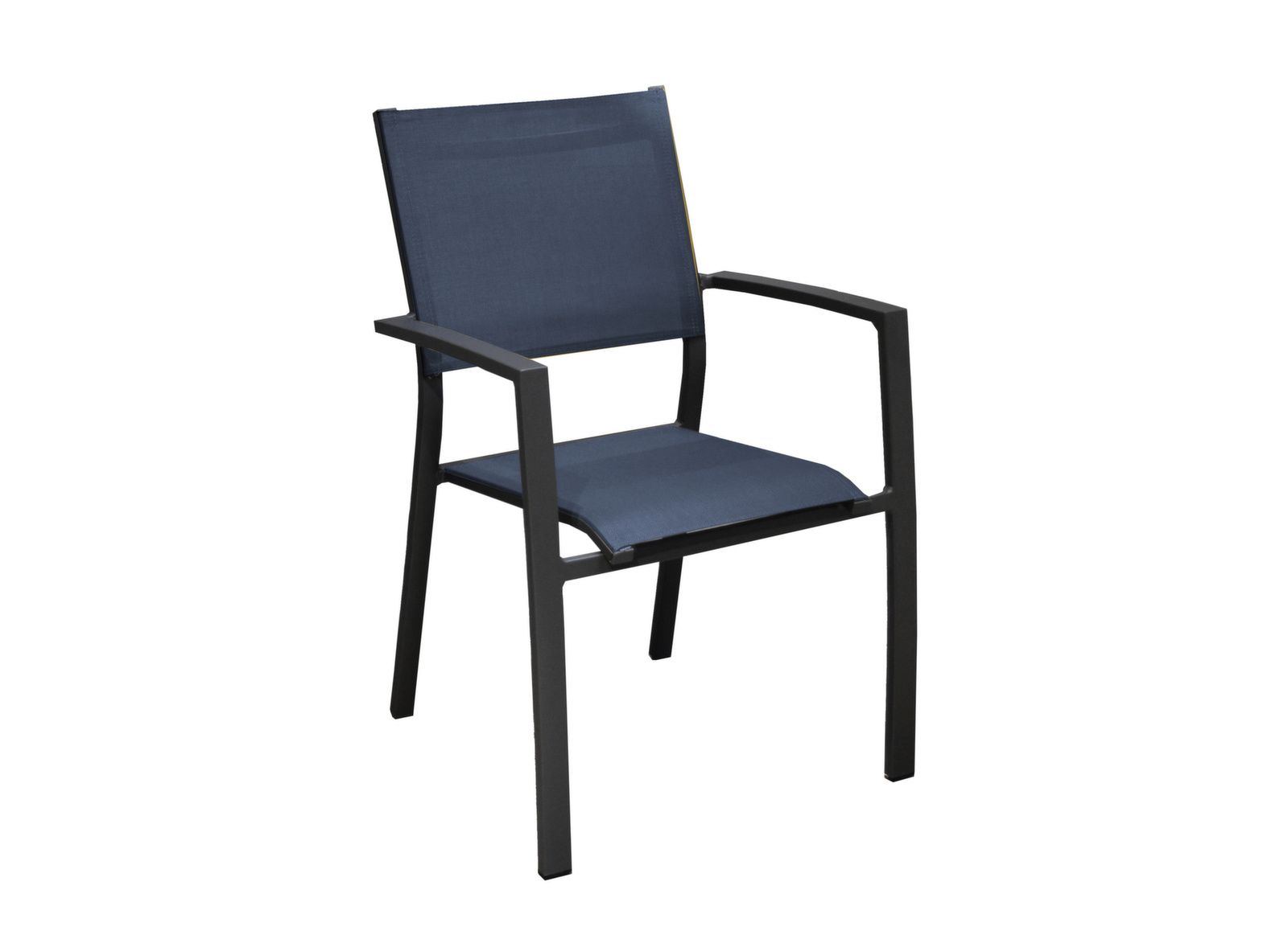 Lot de 6 fauteuils Games - Aluminium et toile TPEP | Empilables, pratiques et intemporels | Graphite & Bleu