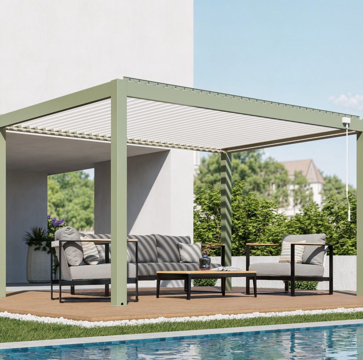 Pergola autoportée solaire Mira | 3x4m | Amande & Blanc