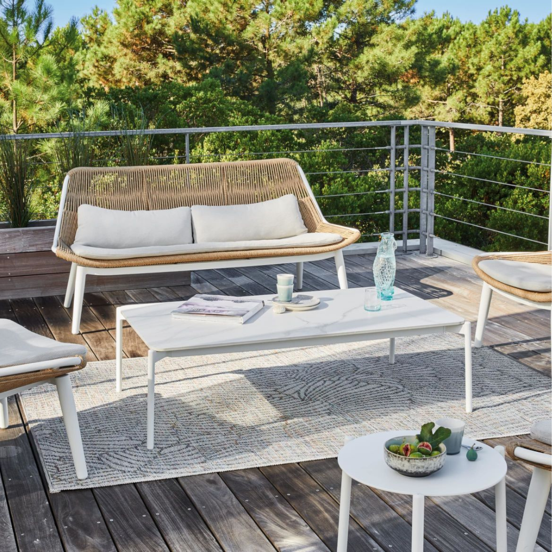 Salon de jardin Como | 2 fauteuils + 1 canapé | Blanc & Écru