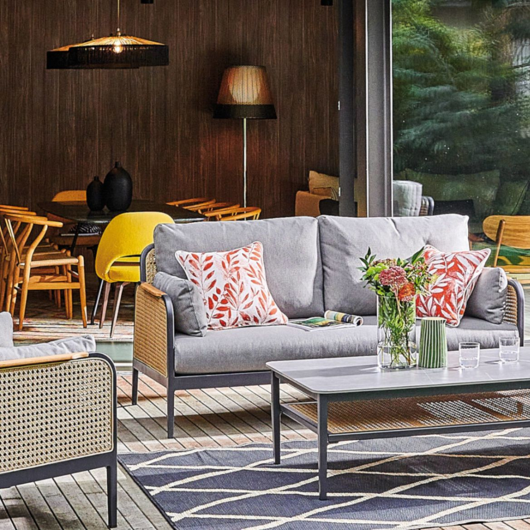 Salon de jardin Raphia | 2 fauteuils + 1 canapé | Graphite & Gris