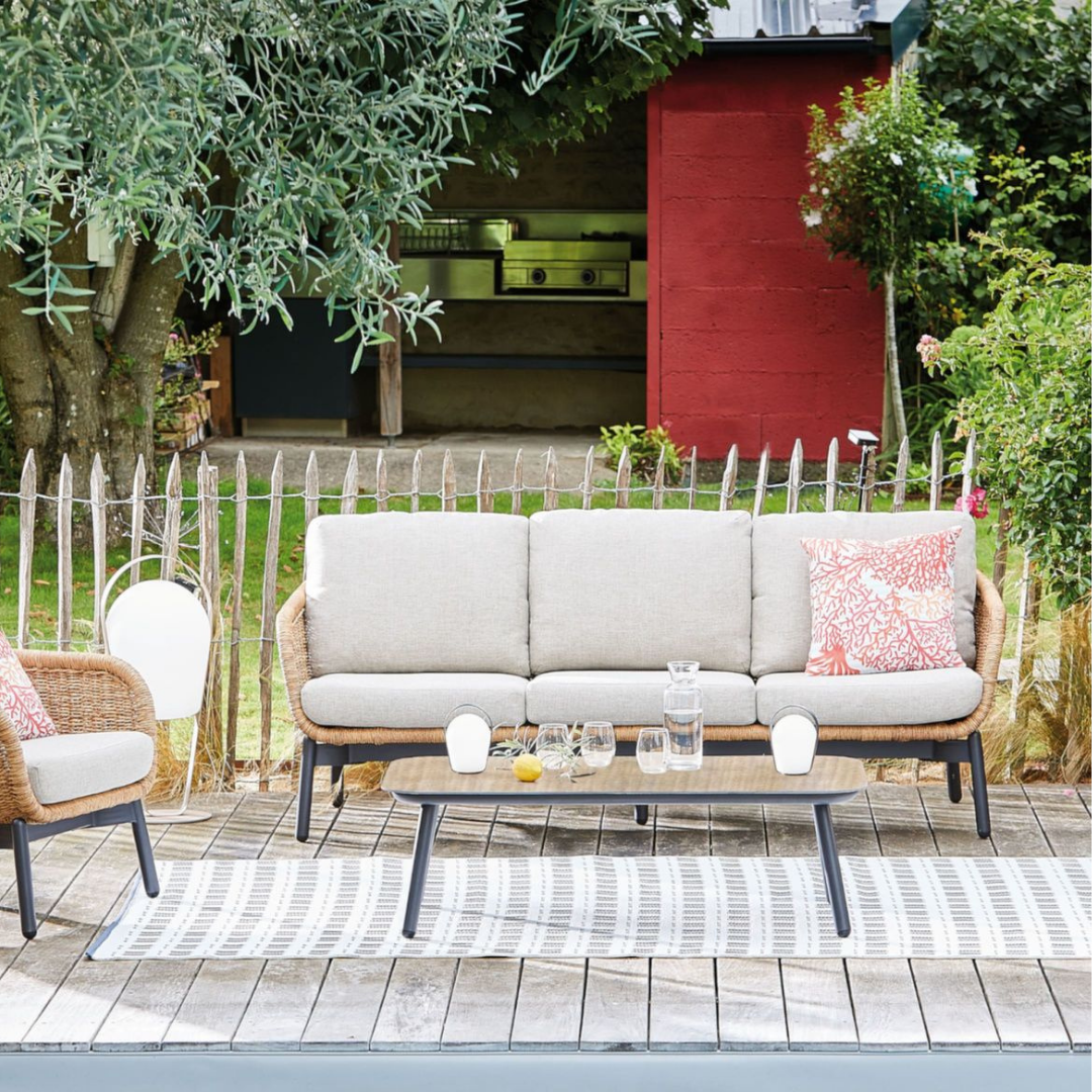 💡 Rangez les coussins à l’abri ou sous housse, couvrez le canapé avec une housse respirante pendant l’hiver ou lors de forts intempéries