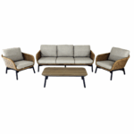 Salon de jardin Tornado | 2 fauteuils + 1 canapé + 1 table basse | Graphite & Beige