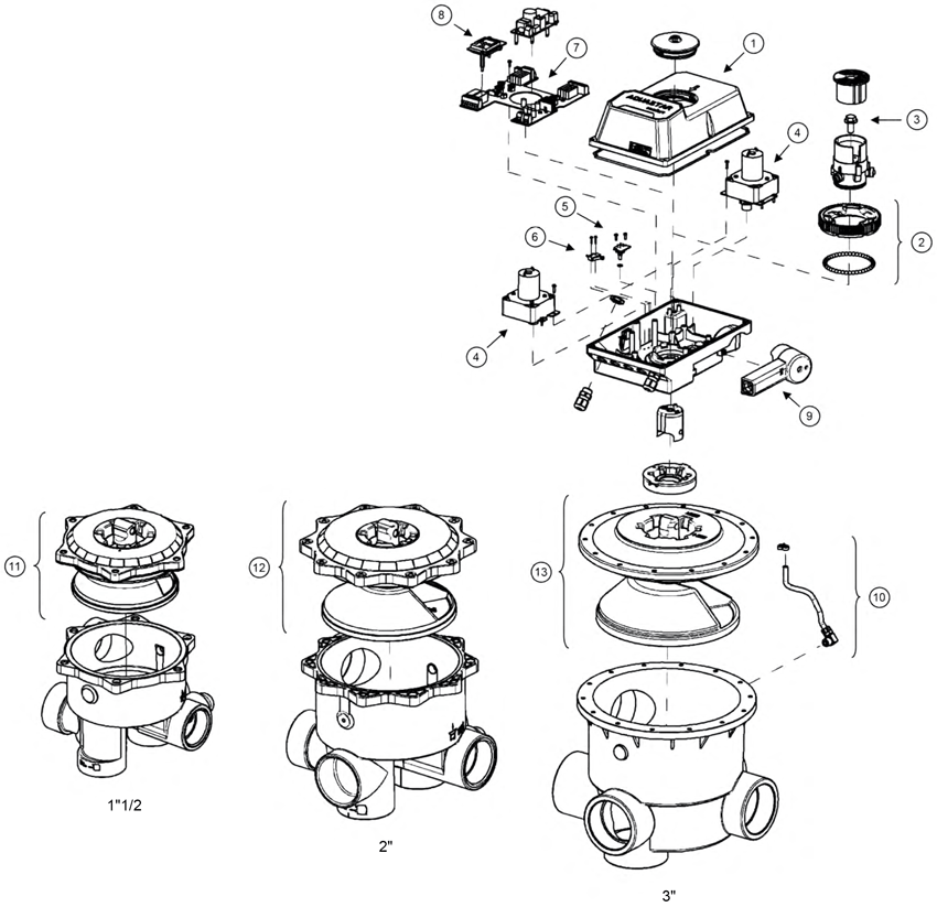 Vanne auto. 3" Aqua Star Comfort 4001-230 SM31 AO 3" ASA-GF (renf. fibre de verre) nature 100-240 VAC + raccords